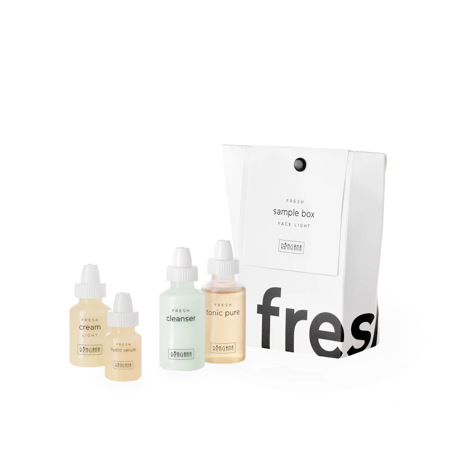 Die RINGANA Kennenlerngrößen laden zum Entdecken der Frischekosmetik ein. Die Probiergrößen passen in jede Handtasche und zeigen ihre wahre Größe in der Wirkung. Zum Beispiel unterwegs oder auf Reisen. Erstbesteller erhalten die FRESH sample box einmalig zum vergünstigten Kennenlernpreis.