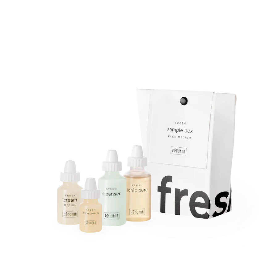 Die RINGANA Kennenlerngrößen laden zum Entdecken der Frischekosmetik ein. Die Probiergrößen passen in jede Handtasche und zeigen ihre wahre Größe in der Wirkung. Zum Beispiel unterwegs oder auf Reisen. Erstbesteller erhalten die FRESH sample box einmalig zum vergünstigten Kennenlernpreis.