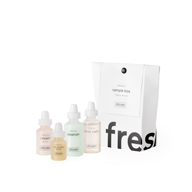 Die RINGANA Kennenlerngrößen laden zum Entdecken der Frischekosmetik ein. Die Probiergrößen passen in jede Handtasche und zeigen ihre wahre Größe in der Wirkung. Zum Beispiel unterwegs oder auf Reisen. Erstbesteller erhalten die FRESH sample box einmalig zum vergünstigten Kennenlernpreis.