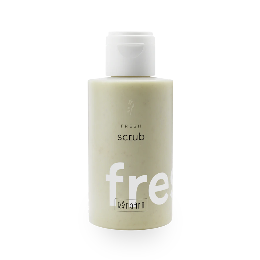 FRESH scrub befreit die Haut von abgestorbenen Hautzellen und beschleunigt so die Zellerneuerung. Natürliche Peelingkörper regen die Durchblutung der Haut an und lassen sie wieder strahlend und rosig aussehen. Ganz ohne Mikroplastik.