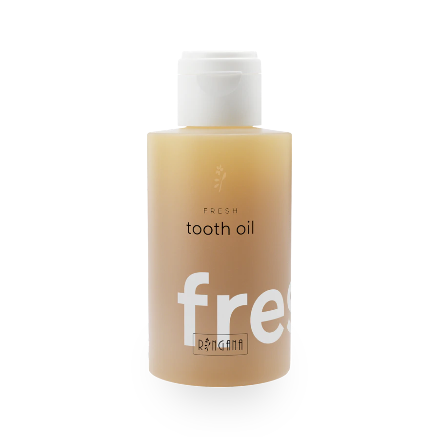 Ölziehen ist der Trend unter den Celebrities – zu Recht! Denn die kalt gepressten Öle aus Minze und Eukalyptus im FRESH tooth oil sorgen in Kombination mit Kurkuma nicht nur für frischen Atem, sondern auch für eine entgiftende Wirkung.Effektive Zahnpflege auf Ölbasis: Das FRESH tooth oil entstand aus der Tradition des Ölziehens. Dabei wird etwas Öl im Mund hin- und herbewegt und anschließend ausgespuckt. Der Sinn dahinter: Das Zahnöl bindet Bakterien in der Mundhöhle. RINGANA geht einen Schritt weiter und bietet ein Zahnöl, das die Zahnpasta ersetzt.